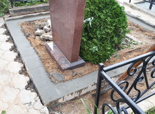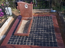 Облицевали бетон полированным гранитом, на территорию участка уложили брусчатку, предварительно приподняв памятник.