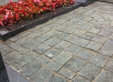 Мощение пола гранитной брусчаткой,